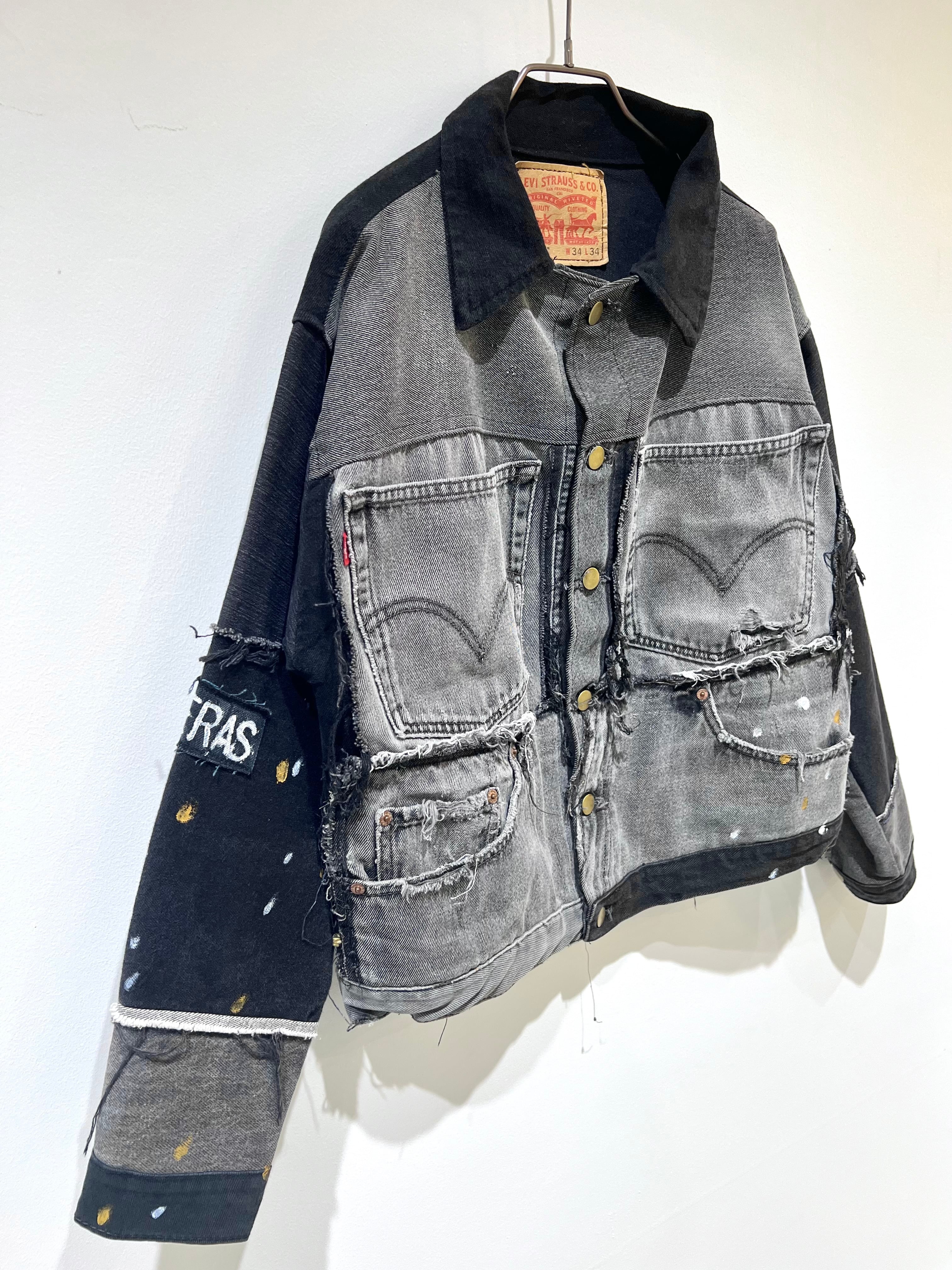 リーバイス等のヴィンテージのデニムパンツを解体して、その生地で新たにジャケットとしてリメイクされた一点物。